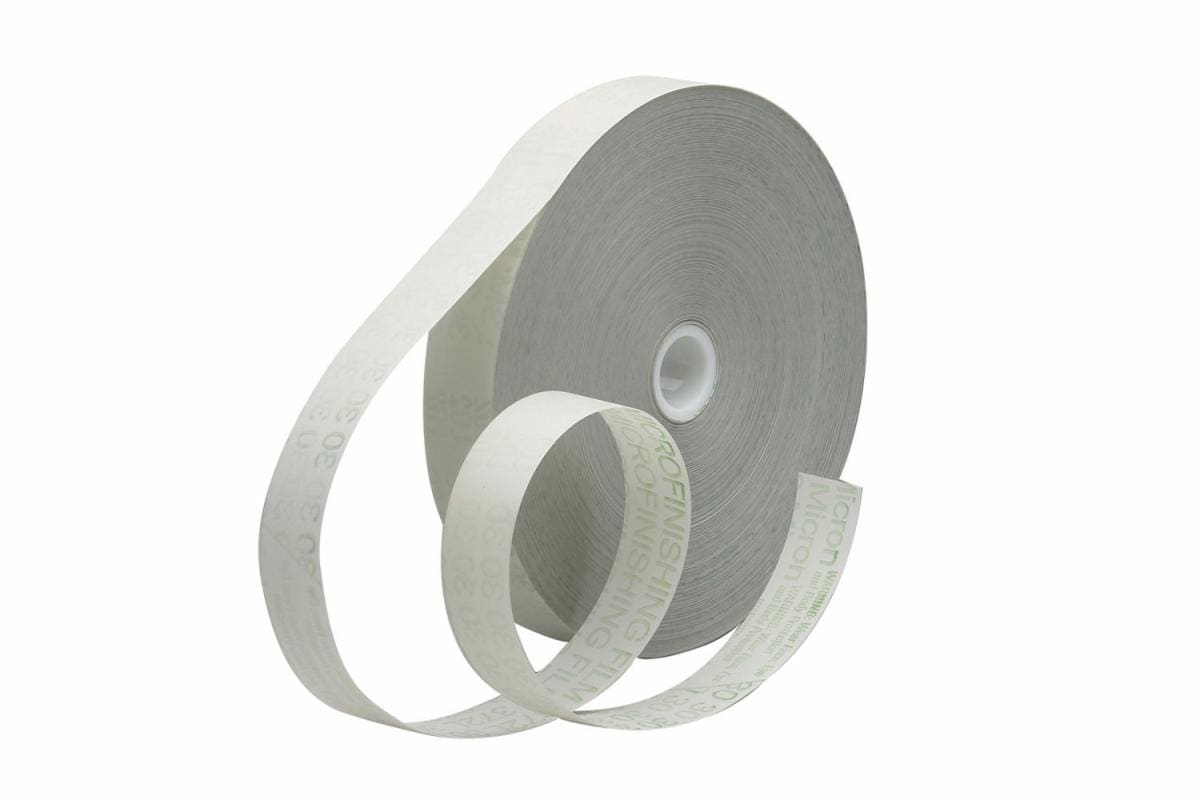 In order to achieve an extremely consistent scratch for microfinishing, 3M use micron-graded mineral, measured at a very tight size tolerances for 3M Microfinishing Film Roll 372L. The resin bond ensures reliable, consistent performance. With a durable film backing, the abrasive helps achieve tight geometry and finish tolerances.
