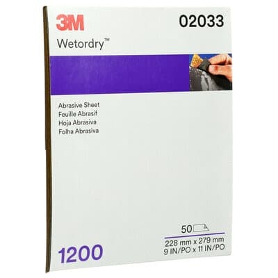 For leveling minor dust nibs, adjusting mismatched orange peel, light sanding on acrylic lacquer paint and other sanding jobs where burning or sanding through clear coat and paint are primary concerns, 3M™ Wetordry™ Abrasive Sheet 401Q makes excellent results easier: it’s durable yet flexible, with a sharp cut that leaves a refined finish. The durable paper backing helps create consistent patterns that are easily buffed out. And the silicon carbide grain is available in grades from 1000 up to 3000 for a full range of non-aggressive sanding and polishing jobs on clear coat, plastic and metal, including areas that require hand compounding and for sanding dark colored paints. Choose sheet sizes of 5-1/2 x 9 inches or 9 x 11 inches to suit specific sanding jobs and reduce the need for tearing.